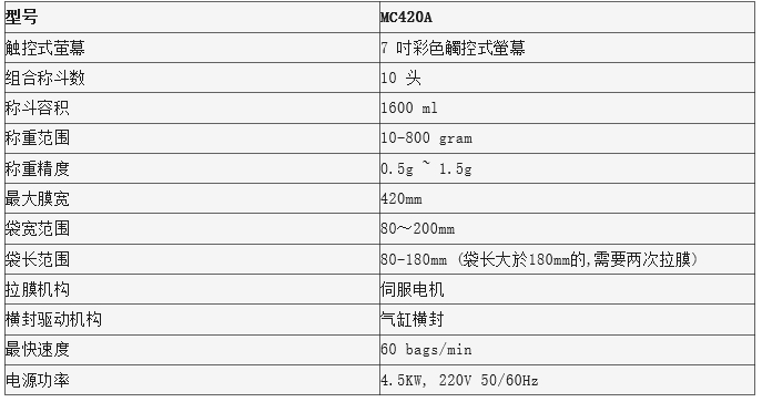 該機集稱量、制袋、充填、封口、打印、沖孔、計數(shù)于一體,采用伺服電機同步帶拉膜。PLC控制元器件均采用國際名牌產(chǎn)品,性能可靠。橫封縱封采用氣動,動作平穩(wěn)可靠。先進的設(shè)計保證了該機適合不同行業(yè)在使用時調(diào)整、操作、維修均十分方便。可和國內(nèi)外各種自動計量設(shè)備配套實用。