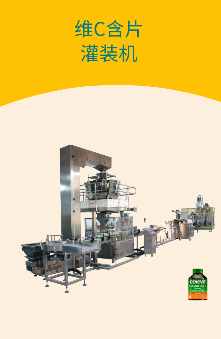 廣州邁馳包裝設(shè)備有限公司專業(yè)致力于包裝行業(yè)24年,有專業(yè)的技術(shù)團(tuán)隊和完善的售后體系,可以根據(jù)客戶的實際需要為客戶專業(yè)定制維C顆粒灌裝流水線。多年來,我們結(jié)合各地客戶的使用反饋以及消費市場包裝樣式的暢銷趨勢,一直對設(shè)備進(jìn)行升級優(yōu)化,只為給客戶提供優(yōu)質(zhì)的包裝服務(wù),專業(yè)解決包裝問題,廣州邁馳包裝設(shè)備有限公司在廣州和合肥都有實體工廠,客戶可以帶樣試機(jī),實地考察工廠實力。接下來為大家展現(xiàn)的是常用的維生素c片灌裝機(jī)。