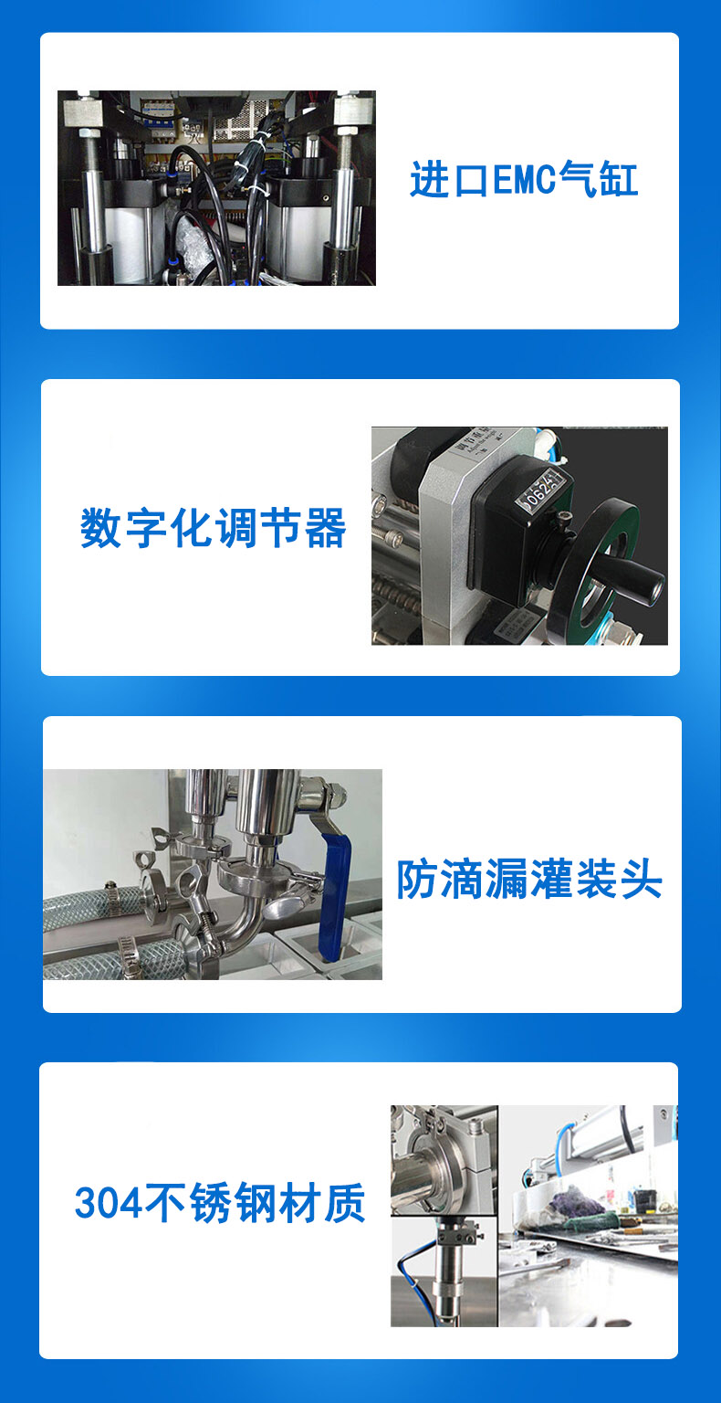 本機(jī)是針對餡料、醬料、果醬、糖漿等液體/膏體包裝精心設(shè)計(jì)的1-5L任意可調(diào)的新一代包裝設(shè)備。采用微電腦PLC自動控制、人機(jī)界面、全封閉、下潛式灌裝。計(jì)量精度高,灌裝范圍大,結(jié)構(gòu)緊湊,運(yùn)行平穩(wěn),適合于各種規(guī)則形狀的容器灌裝,液缸及其管道拆卸、清洗,方便快捷。